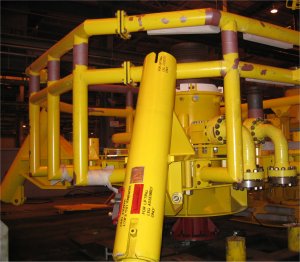 The Detail - The dummy pod is constructed from two end sub-assemblies called thimbles and a central cylindrical sub-assembly called the barrel. The assemblies are fitted to a support ring. A bolt passes through the thimble end plate, through the support ring and through the barrel end ring. 32 M20 bolts per support ring are used around the circumference to connect the parts together. The support ring is fixed in three directions at the pin locations.