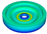 The animation opposite shows the first mode of vibration of a ceiling hung steam oven unit made from honeycomb panels (shown transparently to view mounting brackets and body structure). The steam ovens were very heavy and our client was not only concerned about the strength of the honeycomb panels but also the strength of the body structure. Resilient mounting brackets were included to isolate the unit from high frequency vibrations to reduce noise levels in the galley.