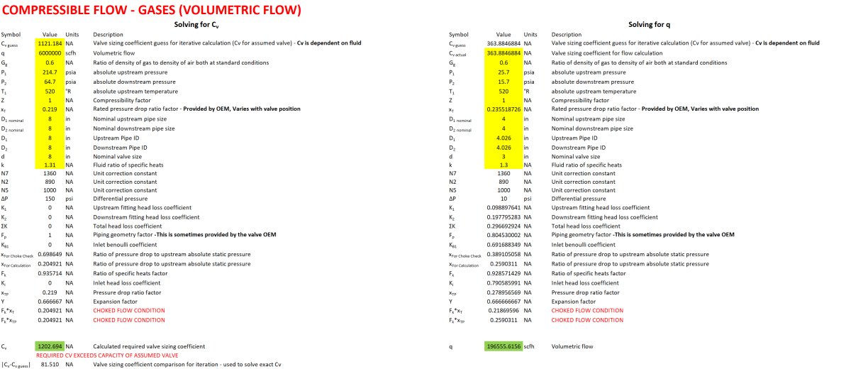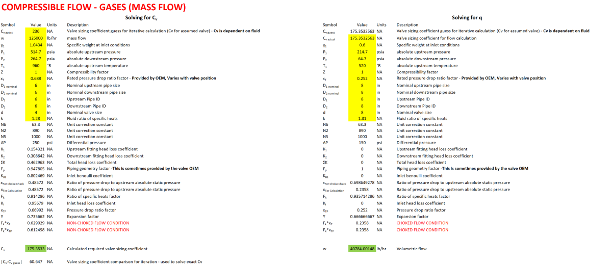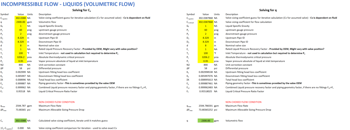 Comprehensive valve sizing calculation spreadsheet, the main engineering principle being followed is Control Valve Sizing using the Cv Flow Coefficient.