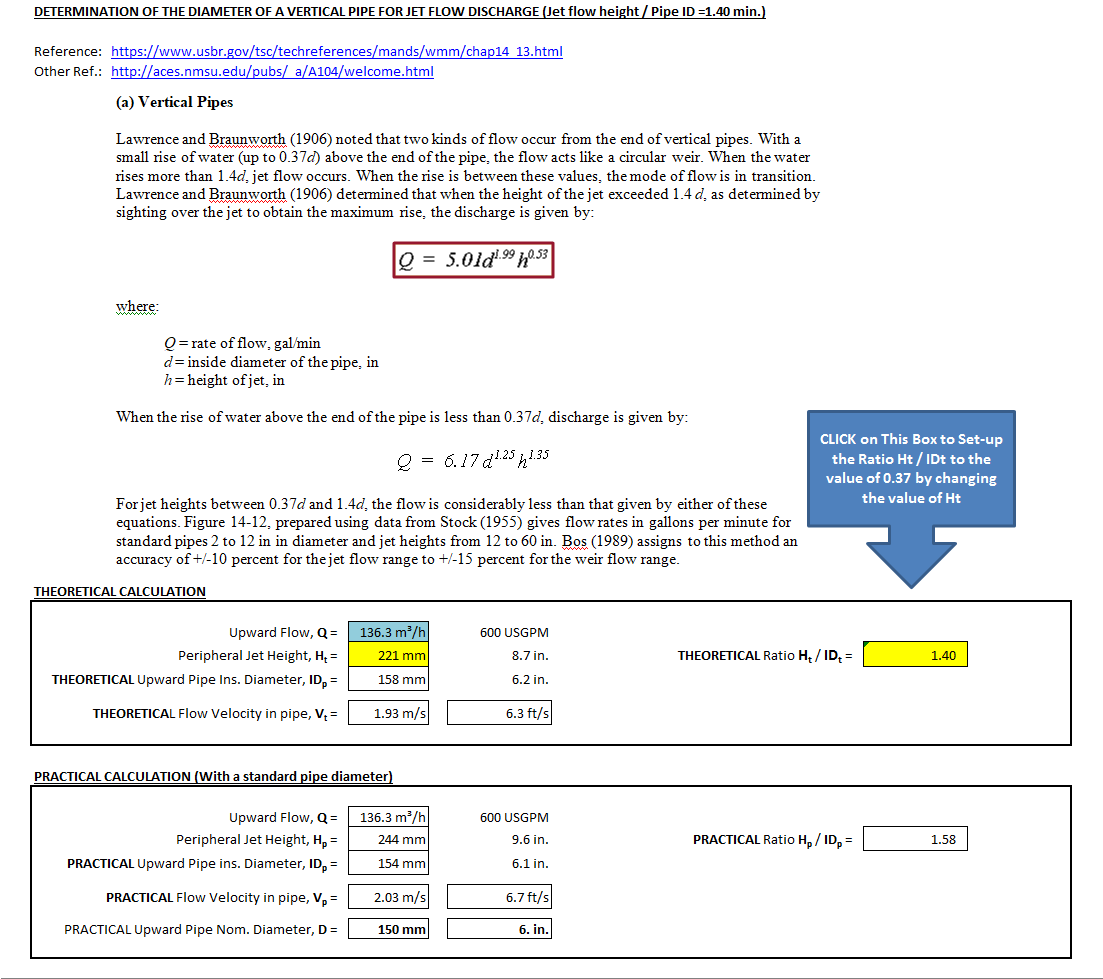 This file determines the following parameters for two kinds of flow occurence from the end of a vertical pipe: