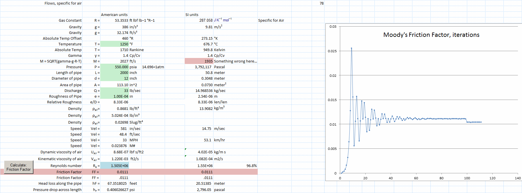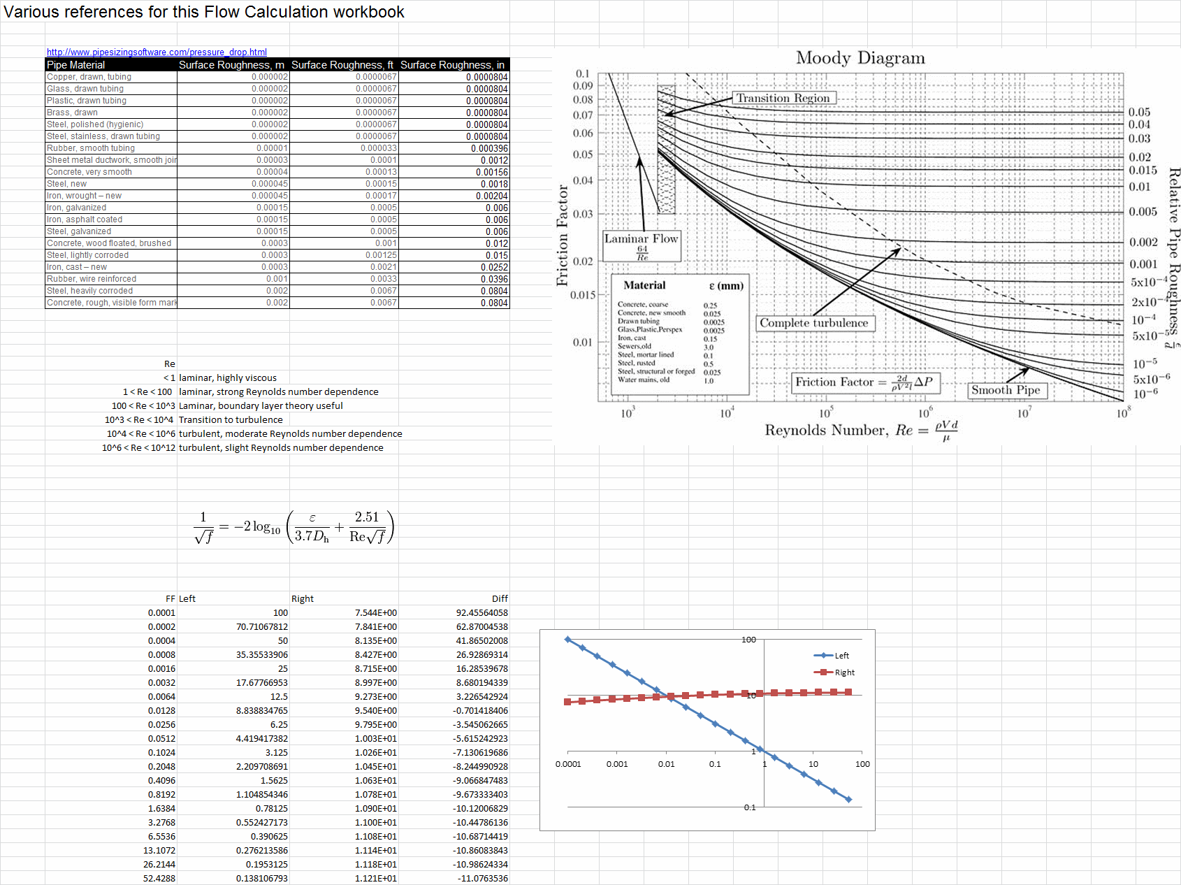 In English units with Metric conversion for verification, and various references on separate sheets. Note the interpolation routine in the viscosity pages, this isn't mine but is very nice, note also this workbook uses named cells, useful and clear.