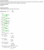 Purpose of calculation: Determine from the given parameters below, the type of flow (laminar or turbulent), the value of friction coefficient, the head loss along the pipe, and the pressure gradient along the pipe.