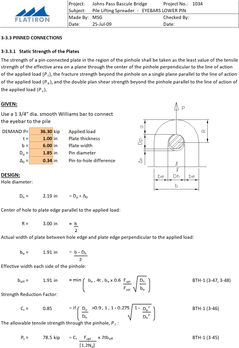 This is an example of how to produce design calculations for a pinned connection using Excel with the XLC add-in.