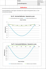 - A unity check for combined bending and torsion loading is evaluated at multiple points along the length of the angle and plotted. Deflections