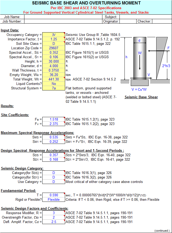 Steel Vert. Tank or Vessel - Seismic base shear and overturning moment for vertical steel tanks/vessels