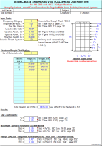 5. Worksheets calculate for "gross" seismic shear force, and do not reflect the use of any load factors. Refer to Section 1605.2 and 1605.3 for applicable loads factors for LRFD or strength design as well as ASD analysis.