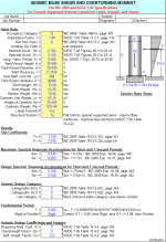 | Vert. Tank or Vessel | Seismic base shear and overturning moment for vertical tanks/vessels |